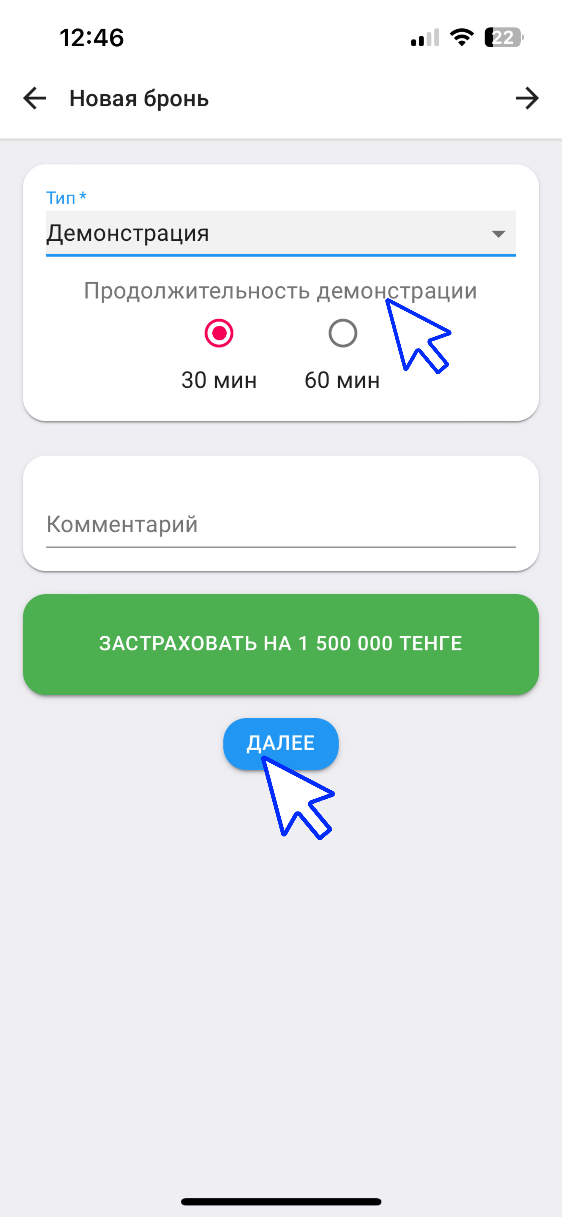 4. Отредактируйте продолжительность демонстрации — бронь готова.